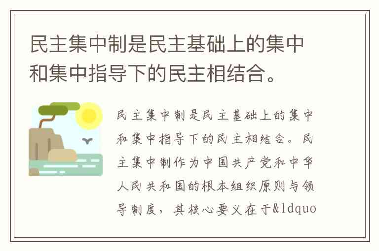 民主集中制是民主基础上的集中和集中指导下的民主相结合。