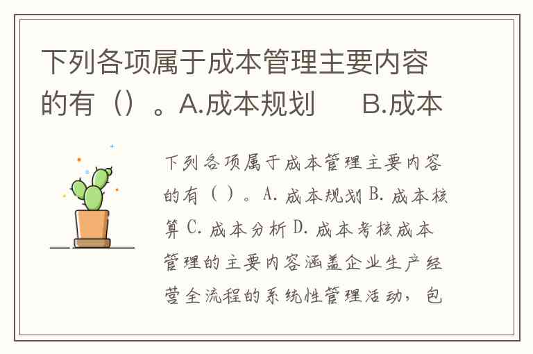 下列各项属于成本管理主要内容的有()。A.成本规划 B.成本核算 C.成本分析 D.成本考核