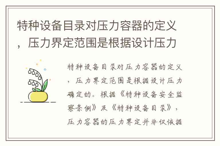 特种设备目录对压力容器的定义,压力界定范围是根据设计压力确定的。