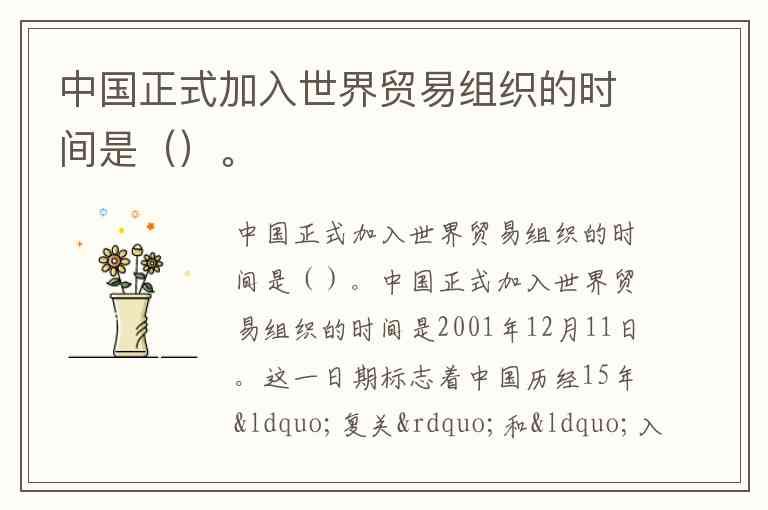 中国正式加入世界贸易组织的时间是()。