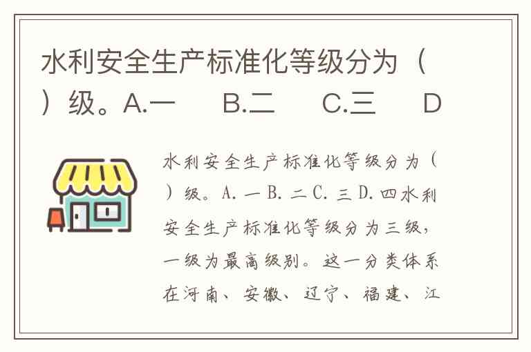水利安全生产标准化等级分为()级。A.一 B.二 C.三 D.四