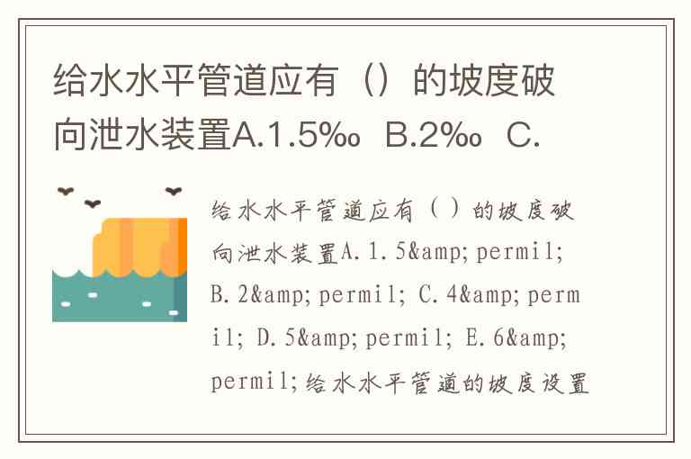 给水水平管道应有()的坡度破向泄水装置A.1.5‰ B.2‰ C.4‰ D.5‰ E.6‰