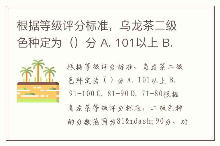 根据等级评分标准,乌龙茶二级色种定为()分 A. 101以上 B. 91-100 C. 81-90 D. 71-80