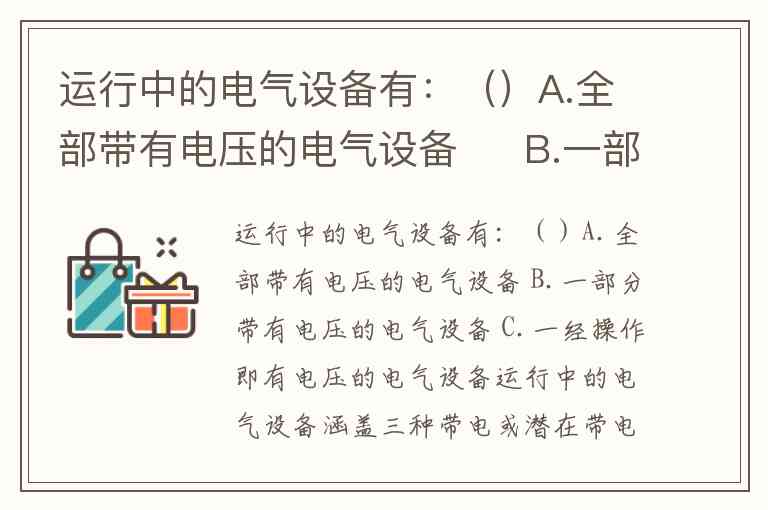 运行中的电气设备有:()A.全部带有电压的电气设备 B.一部分带有电压的电气设备 C.一经操作即有电压的电气设备
