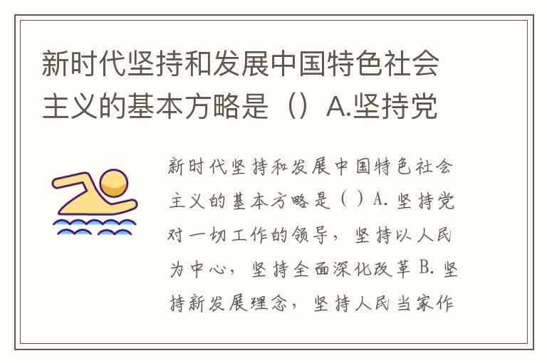 新时代坚持和发展中国特色社会主义的基本方略即党的十九大报告概括的"十四个坚持",是习近平新时代中国特色社会主义思想的重要组成部分和实践要求。这一基本方略涵盖了坚持党对一切工作的领导、坚持以人民为中心、坚持全面深化改革、坚持新发展理念、坚持人民当家作主、坚持全面依法治国、坚持社会主义核心价值体系、坚持在发展中保障和改善民生、坚持人与自然和谐共生、坚持总体国家安全观、坚持党对人民军队的绝对领导、坚持"一国两制"和推进祖国统一、坚持推动构建人类命运共同体、坚持全面从严治党共14个方面。