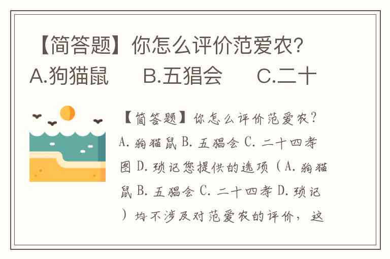 【简答题】你怎么评价范爱农?A.狗猫鼠 B.五猖会 C.二十四孝图 D.琐记