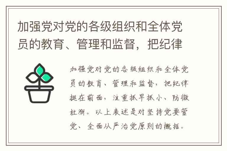加强党对党的各级组织和全体党员的教育、管理和监督,把纪律挺在前面,注重抓早抓小、防微杜渐。以上表述是对坚持党要管党、全面从严治党原则的概括。()