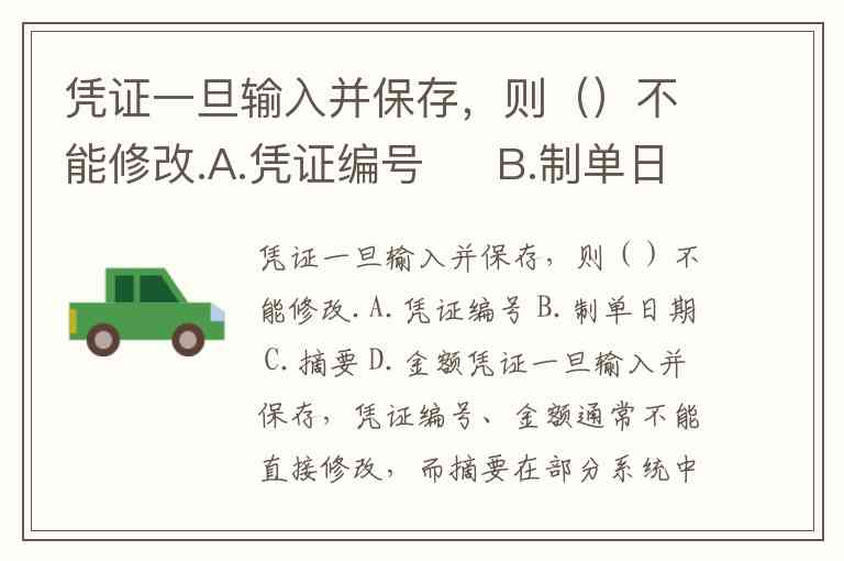 凭证一旦输入并保存,则()不能修改.A.凭证编号 B.制单日期 C.摘要 D.金额