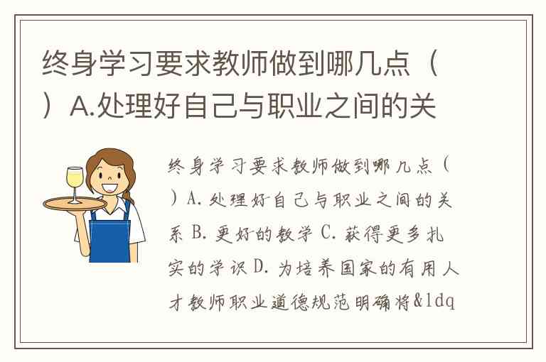 终身学习要求教师做到哪几点()A.处理好自己与职业之间的关系 B.更好的教学 C.获得更多扎实的学识 D.为培养国家的有用人才