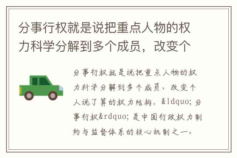 分事行权就是说把重点人物的权力科学分解到多个成员,改变个人说了算的权力结构。