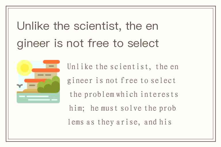 The opening sentence contrasts scientists and engineers, stating, "Unlike the scientist, the engineer is not free to select the problem which interests him." This direct comparison implies the opposite must be true for scientists: they may study problems they find interesting.
