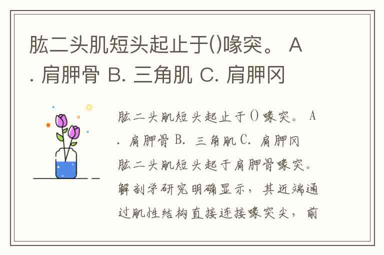 肱二头肌短头起止于()喙突。 A. 肩胛骨 B. 三角肌 C. 肩胛冈
