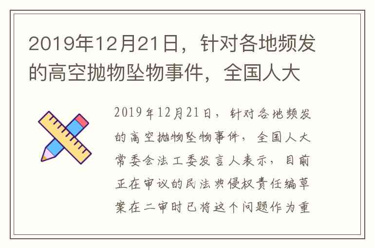 民法典侵权责任编草案的修订,通过明确“有关机关应当依法及时调查,查清责任人”及物业安全保障义务,改变了此前“连坐担责”的模糊状态,既强化了对受害者的保护,也避免了无辜业主的不合理负担,是立法回应社会关切、实现“头顶上的安全”的典型例证。这一过程凸显了科学立法需兼顾公平与效率,平衡多方利益的特点。