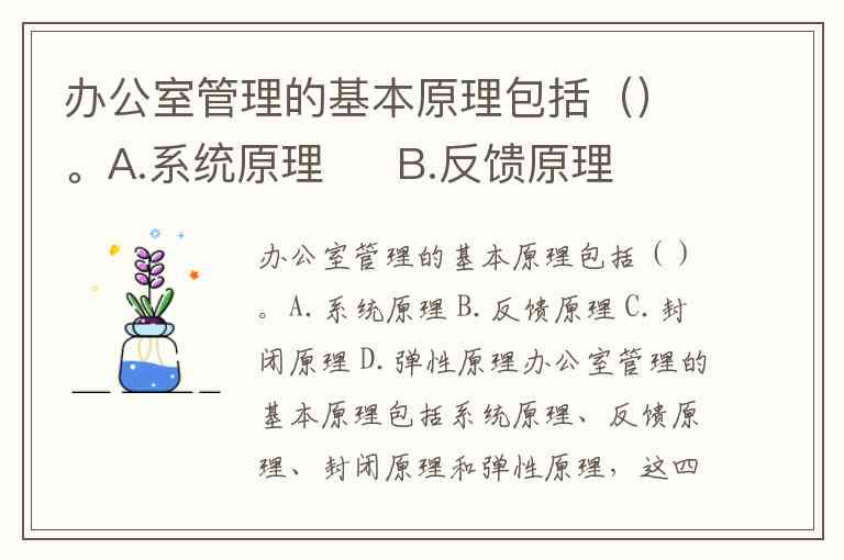 办公室管理的基本原理包括()。A.系统原理 B.反馈原理 C.封闭原理 D.弹性原理