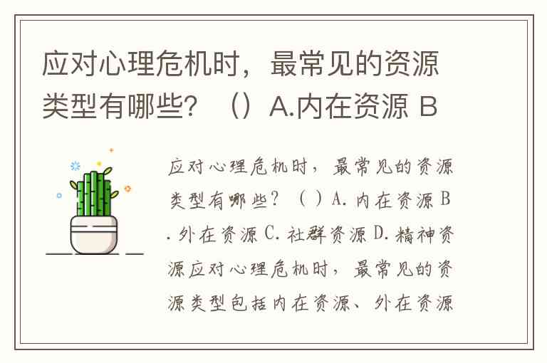 应对心理危机时,最常见的资源类型有哪些?()A.内在资源 B.外在资源 C.社群资源 D.精神资源