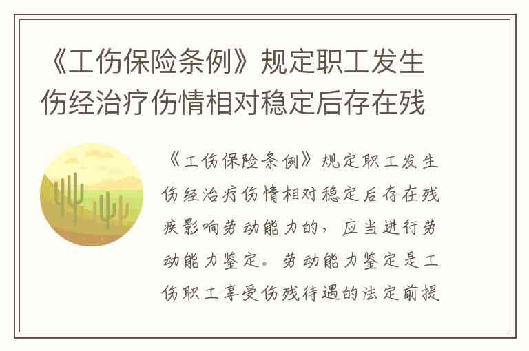 《工伤保险条例》规定职工发生伤经治疗伤情相对稳定后存在残疾影响劳动能力的,应当进行劳动能力鉴定。