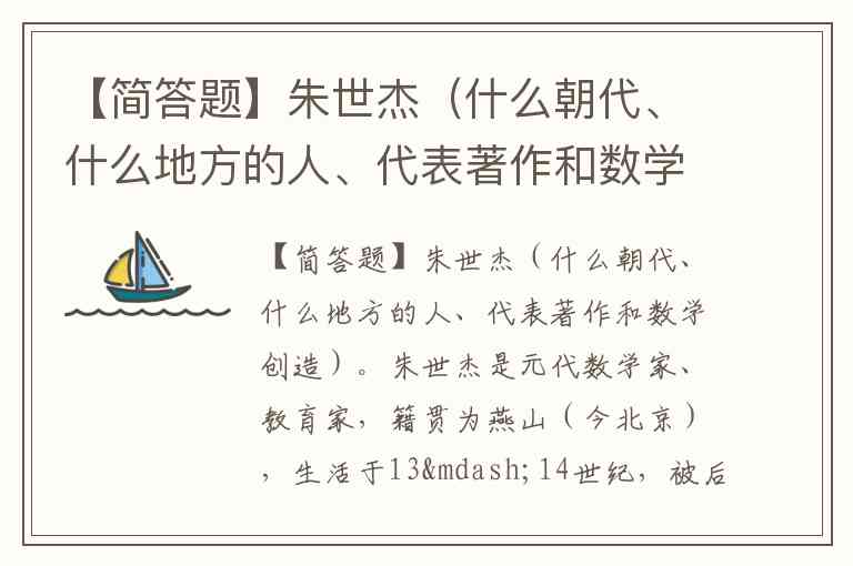 【简答题】朱世杰(什么朝代、什么地方的人、代表著作和数学创造)。
