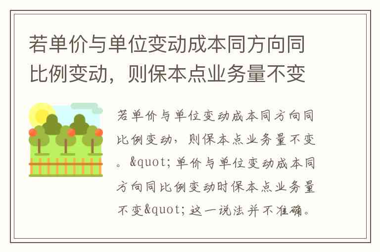 若单价与单位变动成本同方向同比例变动,则保本点业务量不变。