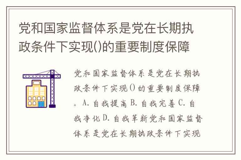 党和国家监督体系是党在长期执政条件下实现()的重要制度保障。A.自我提高 B.自我完善 C.自我净化 D.自我革新