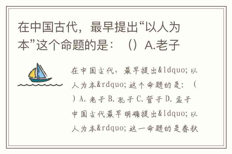在中国古代,最早提出“以人为本”这个命题的是:()A.老子 B.孔子 C.管子 D.孟子