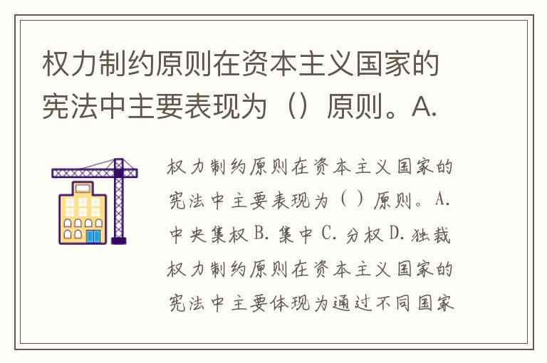 权力制约原则在资本主义国家的宪法中主要表现为()原则。A.中央集权 B.集中 C.分权 D.独裁