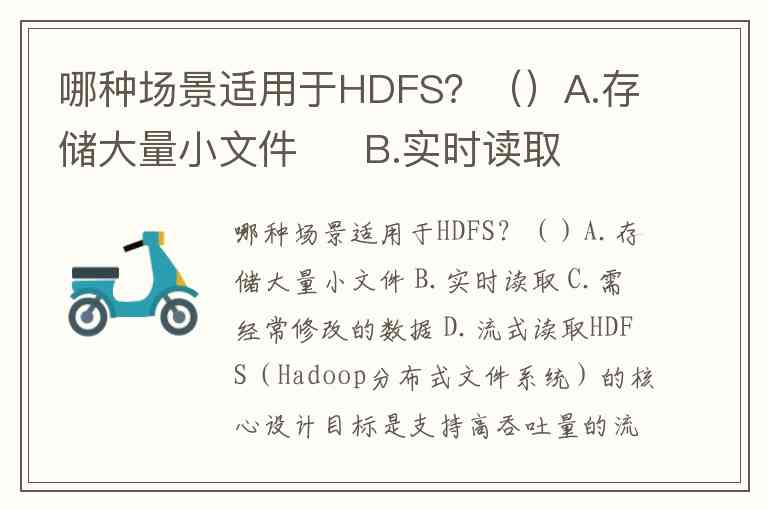 哪种场景适用于HDFS?()A.存储大量小文件 B.实时读取 C.需经常修改的数据 D.流式读取