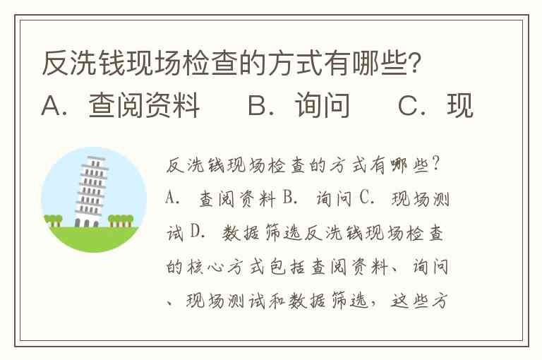 反洗钱现场检查的方式有哪些?A.查阅资料 B.询问 C.现场测试 D.数据筛选