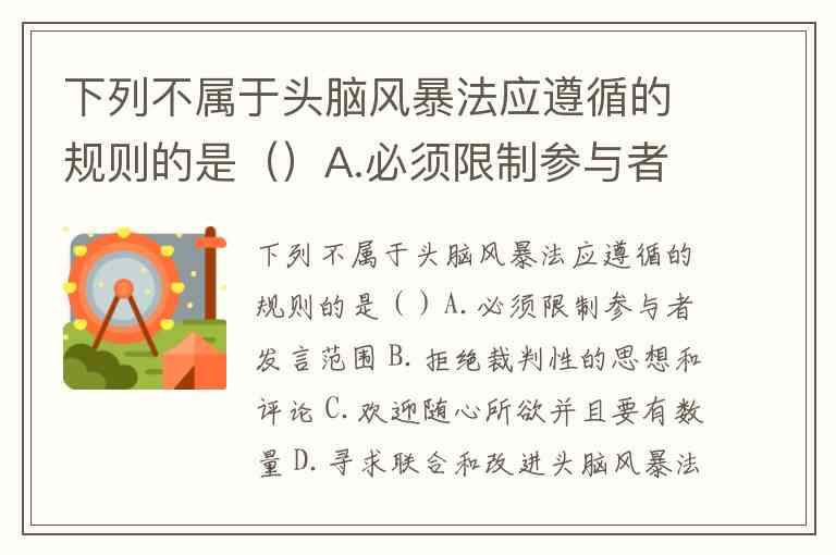 下列不属于头脑风暴法应遵循的规则的是()A.必须限制参与者发言范围 B.拒绝裁判性的思想和评论 C.欢迎随心所欲并且要有数量 D.寻求联合和改进