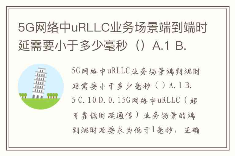 5G网络中uRLLC业务场景端到端时延需要小于多少毫秒()A.1 B.5 C.10 D.0.1