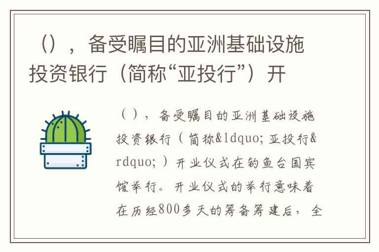 (),备受瞩目的亚洲基础设施投资银行(简称“亚投行”)开业仪式在钓鱼台国宾馆举行。开业仪式的举行意味着在历经800多天的筹备筹建后,全球迎来了首个中国倡议设立的多边金融机构开张运营。A.2016年1月16日 B.2015年1月16日 C.2015年5月28日 D.2015年6月28日