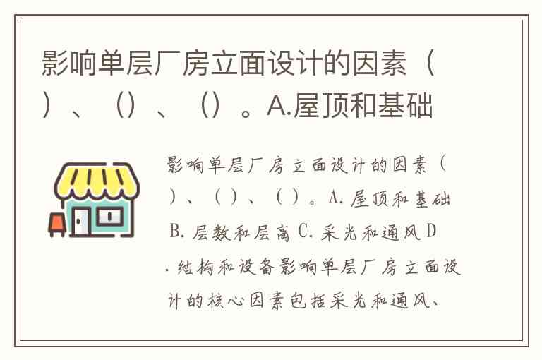 影响单层厂房立面设计的因素()、()、()。A.屋顶和基础 B.层数和层高 C.采光和通风 D.结构和设备