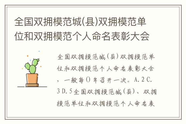全国双拥模范城(县)双拥模范单位和双拥模范个人命名表彰大会,一般每()年召开一次。A.2 C.3 D.5