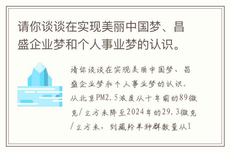 请你谈谈在实现美丽中国梦、昌盛企业梦和个人事业梦的认识。