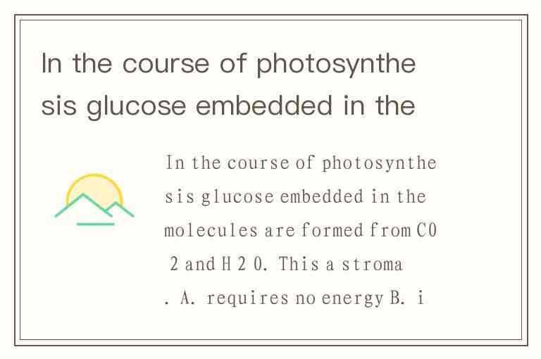 In the course of photosynthesis glucose embedded in the molecules are formed from C0 2 and H 2 0. This a stroma . A. requires no energy B. is none of the above C. i s exergomc D. is endergonic