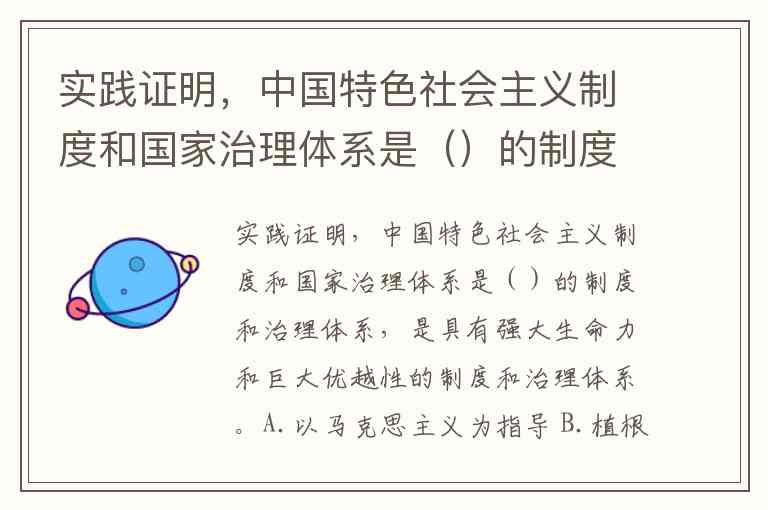 实践证明,中国特色社会主义制度和国家治理体系是()的制度和治理体系,是具有强大生命力和巨大优越性的制度和治理体系。A.以马克思主义为指导 B.植根中国大地 C.具有深厚中华文化根基 D.深得人民拥护