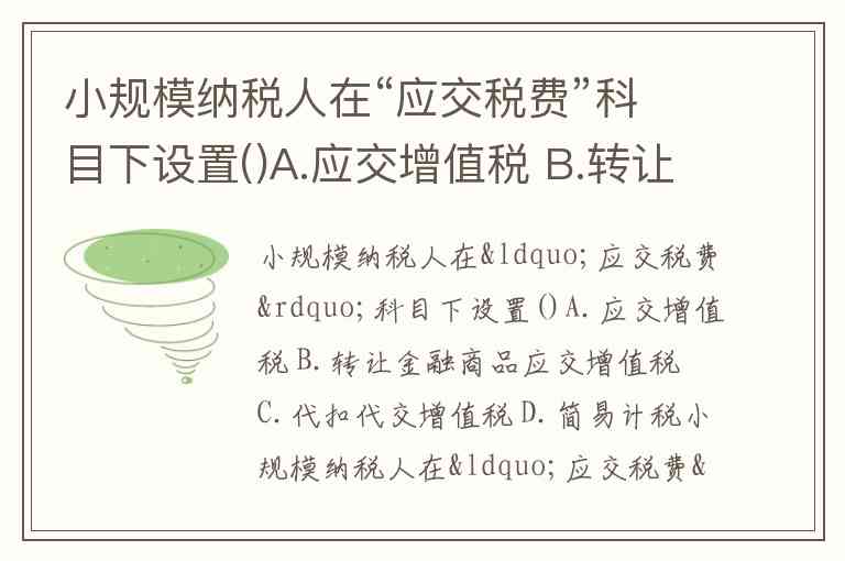 小规模纳税人在“应交税费”科目下设置()A.应交增值税 B.转让金融商品应交增值税 C.代扣代交增值税 D.简易计税