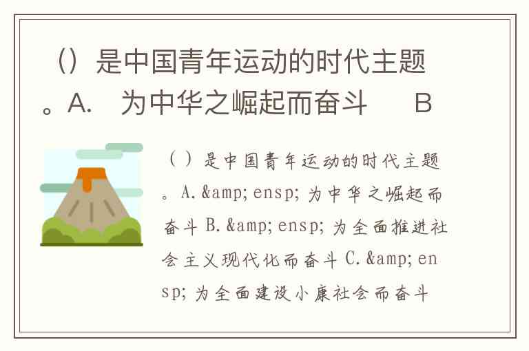 ()是中国青年运动的时代主题。A. 为中华之崛起而奋斗 B. 为全面推进社会主义现代化而奋斗 C. 为全面建设小康社会而奋斗 D. 为实现中华民族伟大复兴的中国梦而奋斗