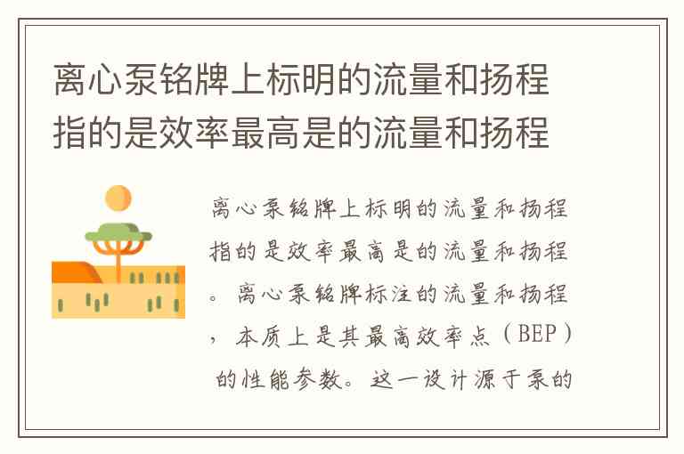 那么,当你的泵铭牌标注流量与实际需求存在偏差时,你会优先考虑调节阀门还是改造叶轮?这背后正是效率、能耗与系统稳定性的权衡艺术。