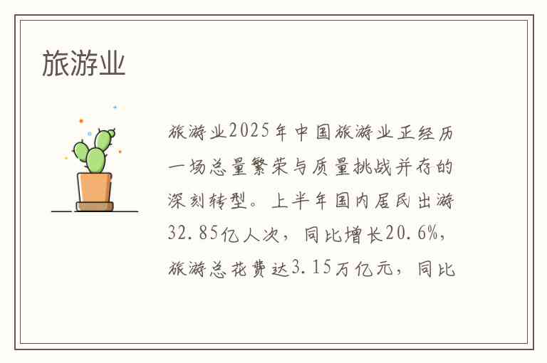 2025年中国旅游业正经历一场总量繁荣与质量挑战并存的深刻转型。上半年国内居民出游32.85亿人次,同比增长20.6%,旅游总花费达3.15万亿元,同比增长15.2%,两项核心指标均创历史新高。值得注意的是,农村居民出游人次和花费增速分别达30.6%和30.1%,显著高于城镇居民的17.5%和12.5%,成为行业增长的新引擎。这种增长态势印证了旅游业作为"支柱产业、民生产业、幸福产业"的战略定位,但同时也暴露出"量增质缓"的结构性矛盾——城镇居民人均消费增速持续滞后于出游人次增长,37家旅游上市公司净利润增长率均值为-4.68%,呈现"热闹不赚钱"的行业困局。