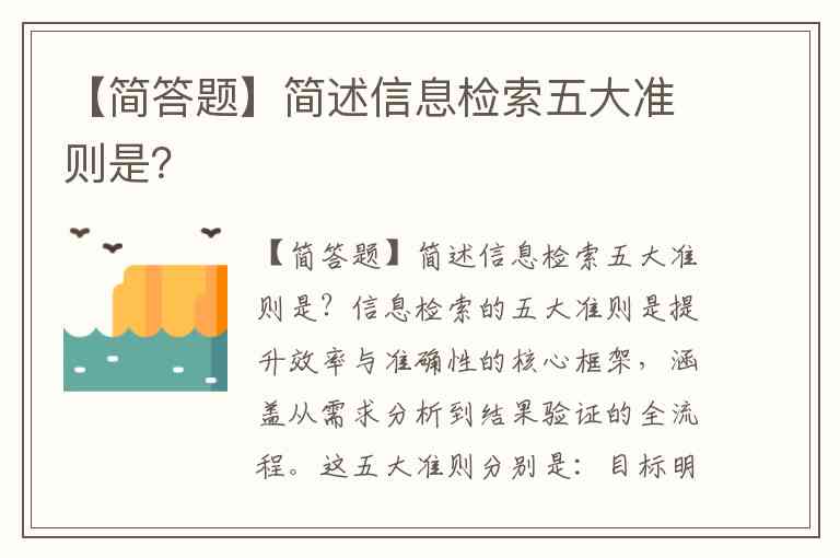 【简答题】简述信息检索五大准则是?
