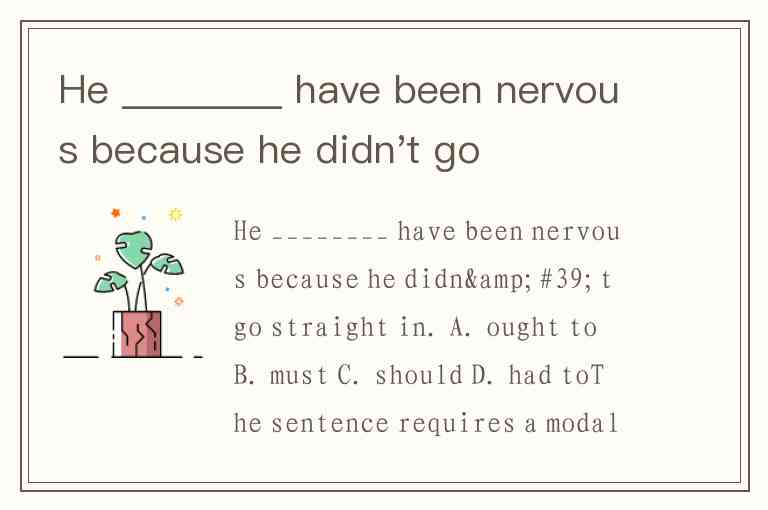He ________ have been nervous because he didn't go straight in. A. ought to B. must C. should D. had to