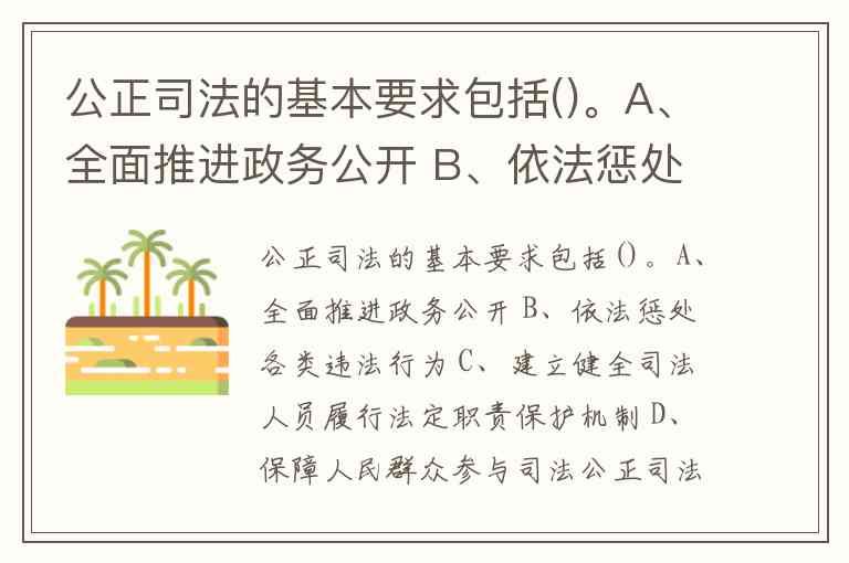公正司法的基本要求包括()。A、全面推进政务公开 B、依法惩处各类违法行为 C、建立健全司法人员履行法定职责保护机制 D、保障人民群众参与司法