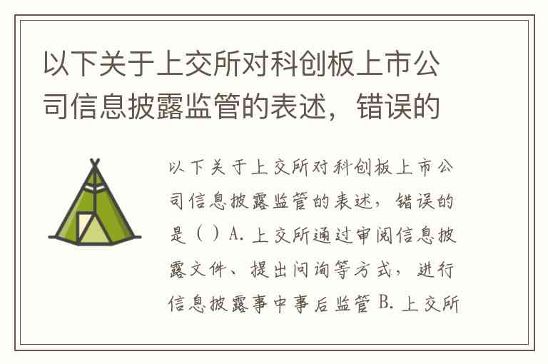 以下关于上交所对科创板上市公司信息披露监管的表述,错误的是()A.上交所通过审阅信息披露文件、提出问询等方式,进行信息披露事中事后监管 B.上交所对科创板上市公司信息披露文件实施形式审核,对其内容的真实性不承担责任 C.上交所不得对科创板上市公司信息披露实施事前审核 D.科创板上市公司和相关信息披露义务人应当在上交所网站和中国证监会指定媒体上披露信息披露文件