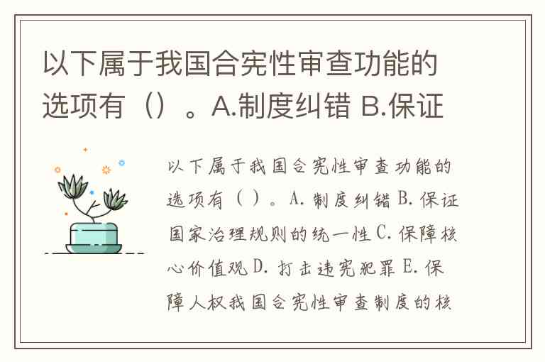 以下属于我国合宪性审查功能的选项有()。A.制度纠错 B.保证国家治理规则的统一性 C.保障核心价值观 D.打击违宪犯罪 E.保障人权