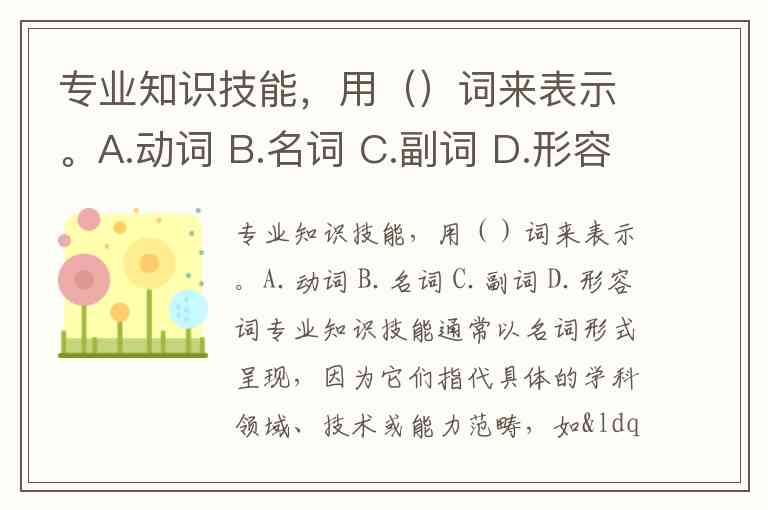 专业知识技能,用()词来表示。A.动词 B.名词 C.副词 D.形容词