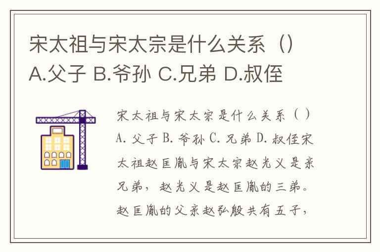 宋太祖与宋太宗是什么关系()A.父子 B.爷孙 C.兄弟 D.叔侄