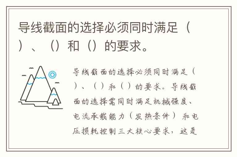 导线截面的选择需同时满足机械强度、电流承载能力(发热条件) 和电压损耗控制三大核心要求,这是确保电力传输安全、可靠与经济的基础。