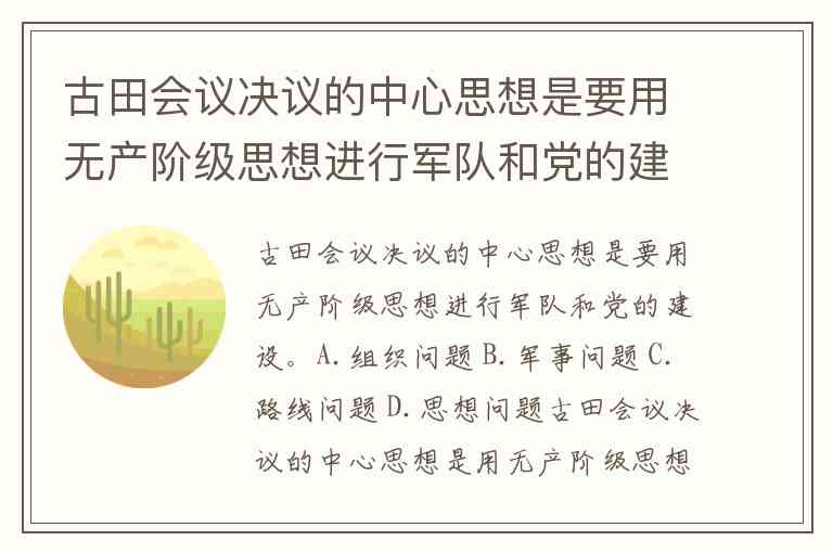 古田会议决议的中心思想是要用无产阶级思想进行军队和党的建设。A.组织问题 B.军事问题 C.路线问题 D.思想问题