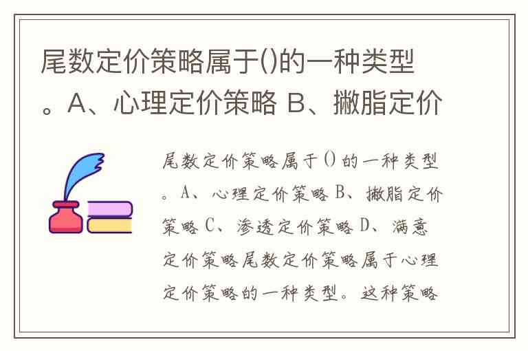 尾数定价策略属于()的一种类型。A、心理定价策略 B、撇脂定价策略 C、渗透定价策略 D、满意定价策略