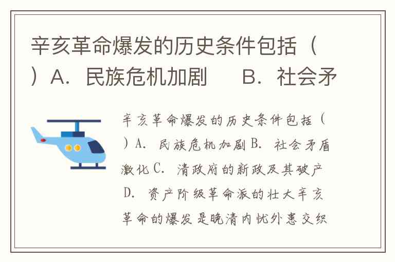 辛亥革命爆发的历史条件包括()A.民族危机加剧 B.社会矛盾激化 C.清政府的新政及其破产 D.资产阶级革命派的壮大